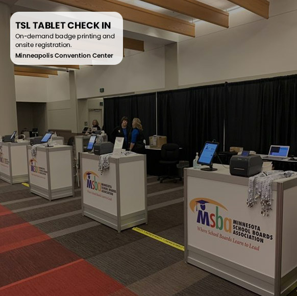 Event badge printing can be fast and easy with TSL Tablet Check IN and express registration. Your attendees simply search and print their badges and tickets from a self-service screen. The entire experience takes your attendees only moments to complete. Select from our existing library of badge formats, or collaborate with us for a custom solution.